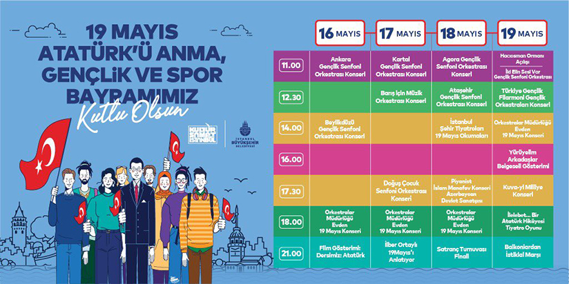 İstanbul Büyükşehir Belediyesi tarafından 19 Mayıs Atatürk’ü Anma Gençlik ve Spor Bayramı kutlamaları kapsamında “19 Mayıs Gençlik Orkestraları Festivali” düzenleniyor.